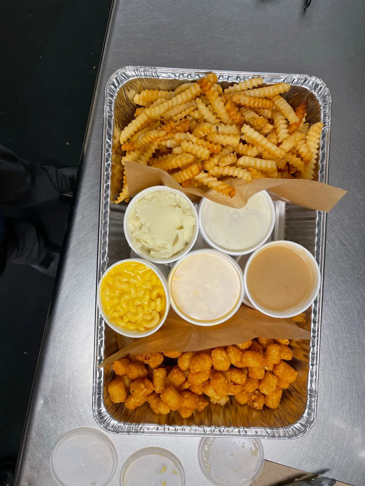 FRIED CHICKEN, BBQ RIBS, SHRIMP, BREADED OR BATTERED COD, LAKE PERCH, HADDOCK SQUARES, TRADITIONAL & BONELESS WINGS, PIZZA! OFFERING MANY DIFFERENT SIDE OPTIONS SUCH AS COLESLAW, FRUIT SALADS, PASTA SALADS! WE’VE CATERED FROM 5-500 GUESTS & WOULD LOVE TO MAKE YOUR NEXT EVENT PERFECT!